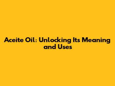 Aceite Oil: Unlocking Its Meaning And Uses