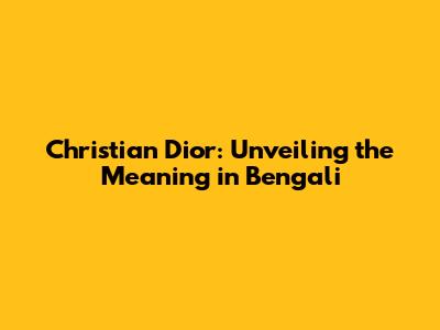 Christian Dior: Unveiling The Meaning In Bengali