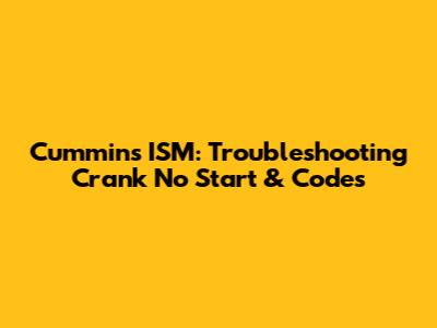 Cummins ISM: Troubleshooting Crank No Start & Codes