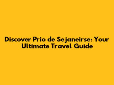 Discover Prio De Sejaneirse: Your Ultimate Travel Guide