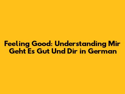 Feeling Good: Understanding 'Mir Geht Es Gut Und Dir' In German