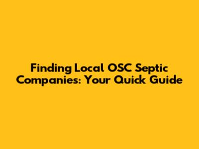Find Local OSC Septic Companies: Fast & Reliable Service