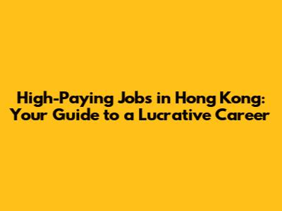 High-Paying Jobs In Hong Kong For Expats