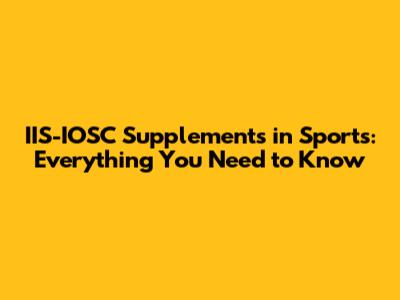 IIS-IOSC Supplements: Boosting Sports Performance