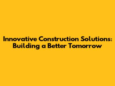 Innovative Construction Solutions For A Better Future