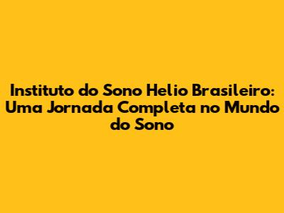 Instituto Do Sono Helio Brasileiro: Tudo O Que Você Precisa Saber