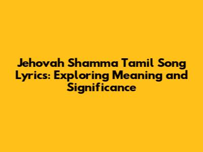 Jehovah Shamma Tamil Song Lyrics: Meaning & Significance