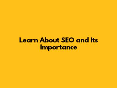 Learn About SEO And Its Importance