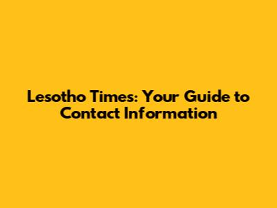 Lesotho Times: Your Guide To Contact Information