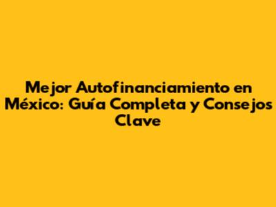 Mejor Autofinanciamiento En México: Guía Completa Y Consejos Clave