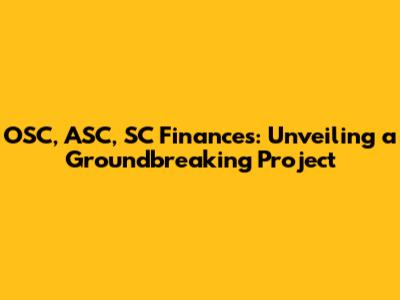 OSC, ASC, SC Finances: Unveiling A Groundbreaking Project