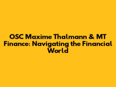OSC Maxime Thalmann & MT Finance: Decoding The Financial Landscape