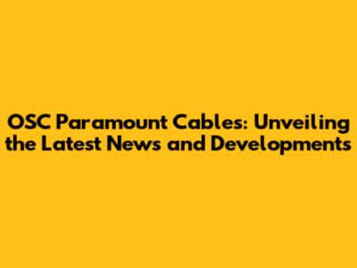 OSC Paramount Cables: Breaking News & Updates