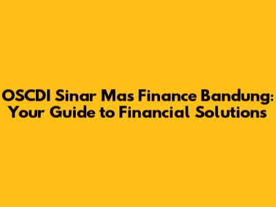 Hey guys! Looking for financial solutions in Bandung? You've probably stumbled upon OSCDI Sinar Mas Finance Bandung. Let’s dive deep into what OSCDI Sinar Mas Finance Bandung is all about, covering everything from its services to how it can benefit you. Understanding your financial options is crucial, and OSCDI Sinar Mas Finance is a significant player in the Bandung financial landscape.