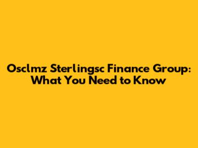 Osclmz Sterlingsc Finance Group: What You Need To Know