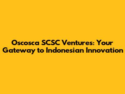 Oscosca SCSC Ventures: Your Gateway To Indonesian Innovation