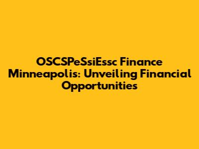Hey guys! Let's dive into the world of OSCSPeSsiEssc finance in Minneapolis. Navigating the financial landscape can sometimes feel like trying to understand a secret code, right? But don't worry, we're going to break it down and make it super clear, especially for those of you in the vibrant city of Minneapolis. This guide is crafted to help you understand what OSCSPeSsiEssc is all about, how it relates to finance, and specifically, what opportunities await you right here in Minneapolis. Whether you're a seasoned investor, a small business owner, or just someone trying to make smart financial decisions, this is for you. We'll cover everything from the basics to some more advanced strategies, all tailored to the local Minneapolis context. Get ready to unlock some serious financial potential! We'll explore the ins and outs, looking at the key players, the types of services available, and how you can make the most of them. Remember, knowledge is power, and when it comes to your finances, being well-informed is your greatest asset. So, grab a coffee (or your favorite beverage), settle in, and let's get started on this exciting journey into the world of OSCSPeSsiEssc finance in Minneapolis! We'll keep it light, informative, and packed with practical tips you can use right away. Let’s make sure you're well-equipped to make informed decisions and build a brighter financial future.
