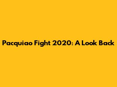 Pacquiao's 2020 Fight: What Happened?