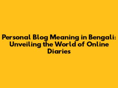 Personal Blog Meaning In Bengali: Unveiling The World Of Online Diaries
