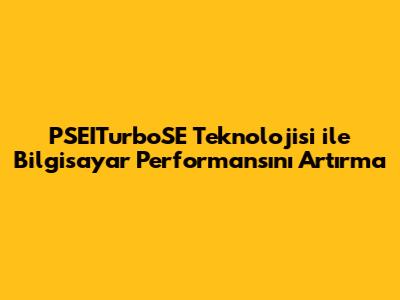 PSEITurboSE: Bilgisayar Performansını Artırma Rehberi