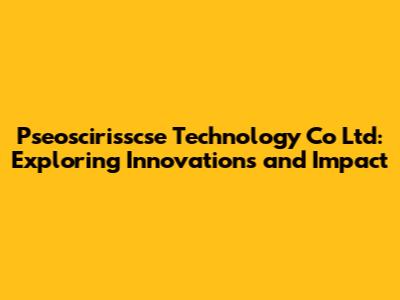 Pseoscirisscse Technology: Exploring Innovations