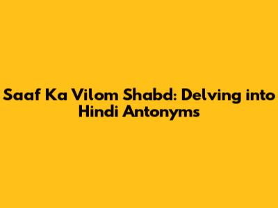 Hey everyone! Today, we're diving into the fascinating world of Hindi vocabulary and exploring a common question: saaf ka vilom shabd. For those new to Hindi, "saaf" means "clean" or "clear." So, we're essentially looking at the opposite of "clean" or "clear." Understanding antonyms (vilom shabd) is super important for anyone learning Hindi. It's not just about memorizing words; it's about grasping the nuances of the language and being able to express yourself effectively. We'll break down the concept of antonyms, explain what "saaf" means, and then introduce you to its opposite(s) with examples and usage. Let's get started!
