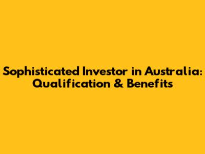 Sophisticated Investor In Australia: Qualification & Benefits