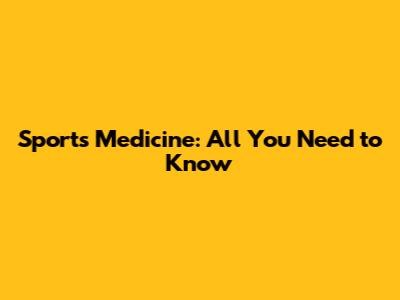 Sports Medicine: All You Need To Know