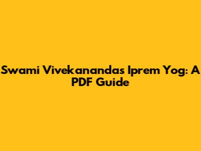 Swami Vivekananda's Iprem Yog: PDF Guide