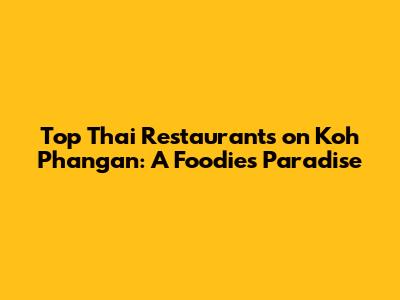 Top Thai Restaurants on Koh Phangan: A Detailed Guide