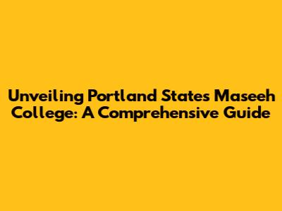 Unveiling Portland State's Maseeh College: A Comprehensive Guide