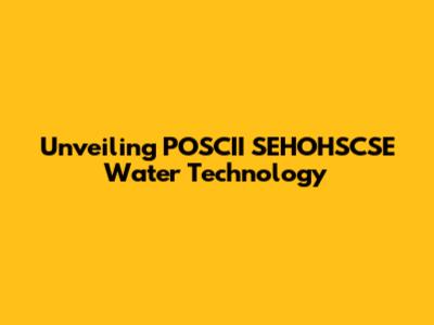 Unveiling POSCII SEHOHSCSE Water Technology