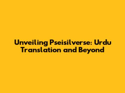 Unveiling Pseisilverse: Urdu Translation And Beyond