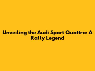 Unveiling The Audi Sport Quattro: A Rally Legend