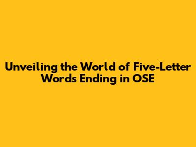 Hey guys, let's dive into a fascinating linguistic adventure! Today, we're going to explore the cool world of five-letter words that end with the suffix 'OSE'. This seemingly small group of words actually holds a surprising amount of variety and intrigue. These words, often loaded with specific meanings and nuances, can significantly enhance your vocabulary, elevate your wordplay game, and even help you in solving those tricky crossword puzzles. This exploration isn't just about memorization; it's about understanding the context, the origins, and the subtle differences that make each word unique. Ready to embark on this wordy journey? Let's get started!
