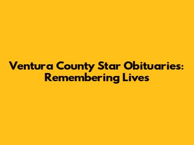 Ventura County Star Obituaries: Recent & Past