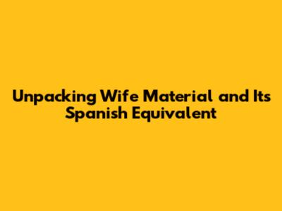What Does 'Wife Material' Mean In Spanish?